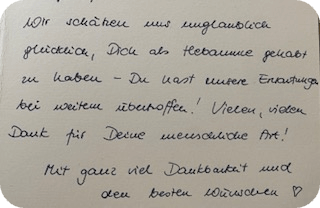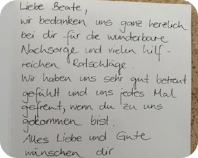 Für die Hebammenbetreuung können wir ein Kennenlerngespräch ausmachen; bei der Schlafberatung biete ich ein 10 minütiges kostenloses Info-Telefonat an.